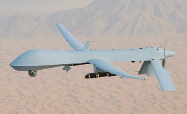 An MQ-1 Predator, armed with AGM-114 Hellfire missiles, piloted by Lt. Col. Scott Miller on a combat mission over southern Afghanistan. (U.S. Air Force Photo / Lt. Col. Leslie Pratt)